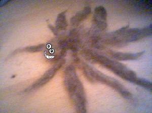 | Beschreibung des Werks durch den Künstler: Es sind zwar keine gemalten Bilder aber, wie ich finde, auch eine (eigenartige) Art von Kunst! Mein aus Haarspitzenfusseln zu Dreads geriebendes Dreadlockmonster, das sich aus geschorenen Dreadlocks zusammenfilzt und demjenigen, der sich seiner Dreads entlädigt hat, das Hirn raussaugt! |